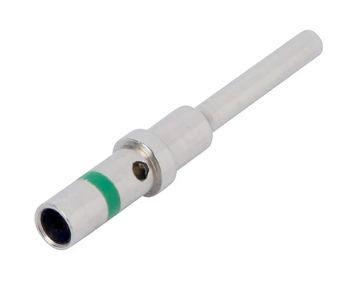 Deutsch Size-16 / 13A Solid Contact PIN, Nickel-Plated – Green Stripe, For 14 AWG (0460-215-16141)